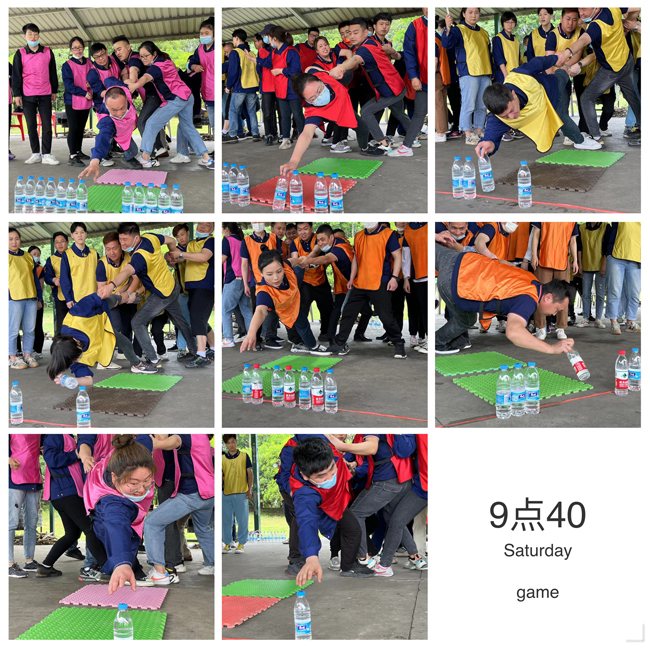 增強(qiáng)團(tuán)隊(duì)信任,鍛煉溝通交流能力,教練員給每個(gè)隊(duì)設(shè)置的任務(wù)就是隔著1米5的距離,讓每個(gè)隊(duì)員在身子不能觸及地上的情況下,看那個(gè)團(tuán)隊(duì)配合默契,能提前拿到水瓶。