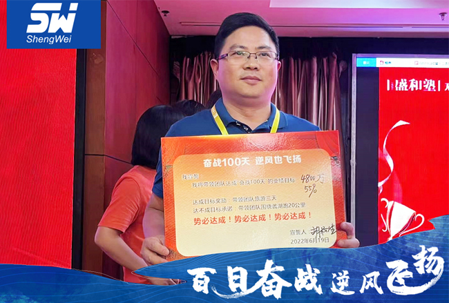 董事長(zhǎng)胡楊生宣誓:帶領(lǐng)團(tuán)隊(duì)達(dá)成【奮戰(zhàn)100天】的業(yè)績(jī)目標(biāo):4800萬(wàn)
