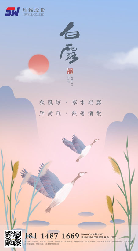 秋空雁度青天遠(yuǎn),疏樹蟬嘶白露寒。晝夜溫差較大,夜間會(huì)感到一絲絲的涼意,明顯地感覺到?jīng)鏊那锾斓絹怼?quot;白露"代表著暑熱的結(jié)束,萬(wàn)物隨寒氣增長(zhǎng),逐漸蕭落、成熟。