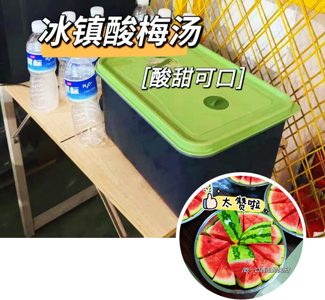 一聲聲親切的問候,一句句暖心的叮囑,伴隨著冰涼的瓜果飲料,瞬間驅散了悶熱,甜到了大家的心坎里。關愛委的小伙伴們一邊遞上清涼,一邊不忘嘮叨:“咱們搶進度、提產能,都是為了給客戶交出更好的產品!但前提是,大家伙兒都得健健康康的,這才是根本!